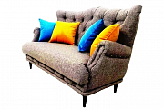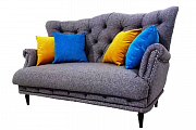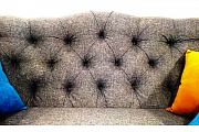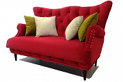 Диван Джастин на точенных опорах из массива березы. Каретная стяжка на спинке и торцевой части основания.