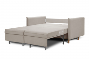 Диван воплощает представления о скандинавском стиле. Поэтому соответствует современным требованиям мебельной моды и является центром притяжения внимания в большинстве интерьеров. Диван имеет механизм трансформации, поэтому полностью раскрывает своё назначение. В диване предусмотрены мягкие сиденья на независимом пружинном блоке со съемными чехлами, четыре подушки. Ножки выполнены из массива березы.