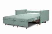 Диван воплощает представления о скандинавском стиле. Поэтому соответствует современным требованиям мебельной моды и является центром притяжения внимания в большинстве интерьеров. Диван имеет механизм трансформации, поэтому полностью раскрывает своё назначение. В диване предусмотрены мягкие сиденья на независимом пружинном блоке со съемными чехлами, четыре подушки. Ножки выполнены из массива березы.