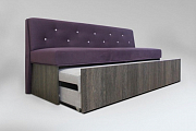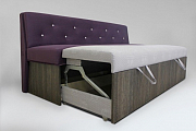 Благодаря лаконичному дизайну диван «Верона» легко впишется в классический и современный интерьер. Главный эстетический акцент сделан на контраст текстуры видимых поверхностей и обивки дивана выполненной в стиле капитоне. Кухонный диван «Верона» изготовлен с применением фанеры, ДСП, ЛДСП, ДВП, ЛДВП. Все используемые материалы соответствуют стандартам высокого качества, экологичны и износоустойчивы. Диван имеет механизм трансформации «дельфин», позволяющий получить ровную и оптимальную по площади поверхность. Механизм трансформации весьма прост и требует минимальных усилий: достаточно выкатить из-под сиденья дополнительную платформу и, взявшись за специальные петли, поднять трансформируемое место до уровня сиденья дивана. Тем самым удаётся получить сплошную и ровную поверхность.