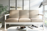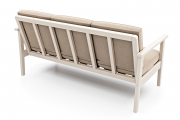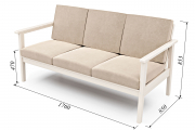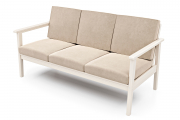 Каркас изделия выполнен из натурального и экологически чистого массива сосны. Мягкие подушки сиденья и приспинные подушки изготовлены из качественного высокоэластичного ППУ. На диване могут расположиться три взрослых человека, вес каждого до 120 кг.