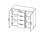 Тип отделений — Выдвижные ящики / Полки / Распашные дверцы