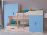Кровать двухъярусная "Лео" дуб молочный-голубой