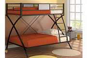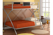 Визуально, в отличии от кроватей из лдсп, металлическая двухъярусная кровать выглядит легко и воздушно. Ещё к особенности этой модели можно отнести лестницу, которая находится спереди кровати и может ставиться при сборке с левой или правой стороны кровати.