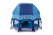 Легкая алюминиевая рама достаточно прочная и прослужит не один год. К тому же, Jetem Sport - это не просто манеж. С помощью крыши его легко можно превратить в игровой домик для детей постарше. Специально для этого сбоку есть лаз на молнии.