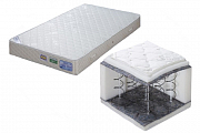 Матрас эконом класса средней жесткости. Основу матраса составляет пружинный блок из двуконусных пружин типа «Боннель». Конструктивная особенность пружин «боннель» - последовательное уменьшение радиуса опоры витка, что создает оптимальную систему распределения веса тела и его удобного расположения, позволяет избежать соприкосновения витков, трения и скрипа. Такая система пружин является ортопедической, поскольку позволяет поддержать тело в анатомически правильном положении.