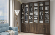 Четырехдверный распашной шкаф-витрина «В-18» для гостиной или библиотеки. Шкаф оборудован полками для хранения книг или посуды. Верхние двери со стеклом.