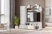 Компактный гарнитур для гостиной МГС 9 в цвете цемент светлый прекрасно впишется в современную обстановку. Модель отличается небольшим размером и обилием открытых зон хранения.